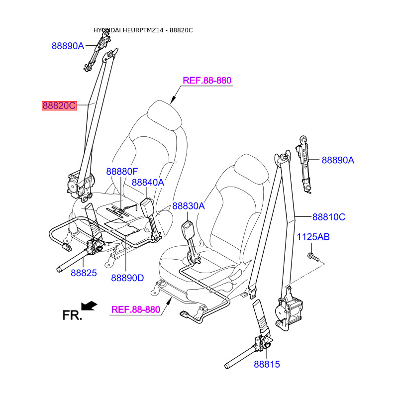 Ремінь безпеки правий 88820-2Y210MBS Mobis