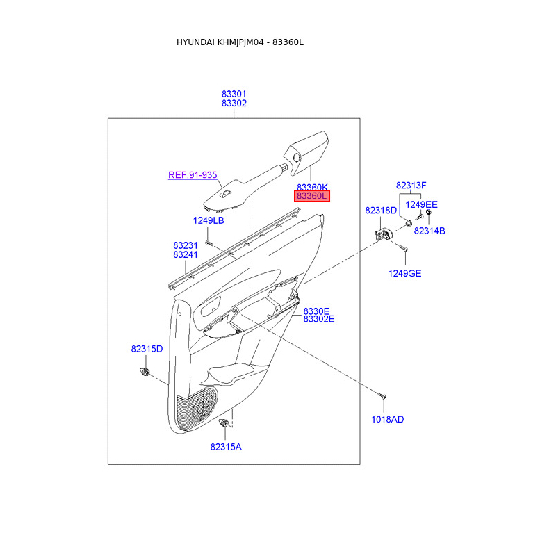Оббивка (накладка) салону права 83360-2E010U7 Mobis