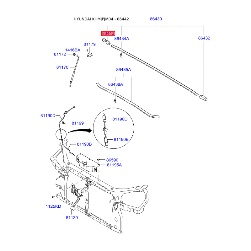 Пошук деталей можна виконати за оригінальним кодом 864422E000.