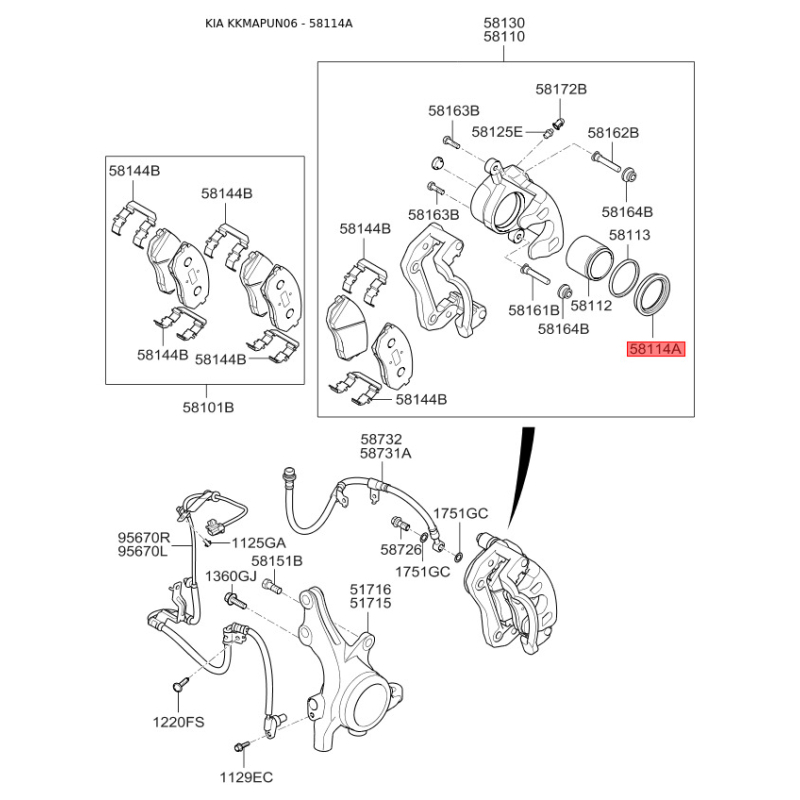 Пошук деталей можна виконати за оригінальним кодом 581141D000.