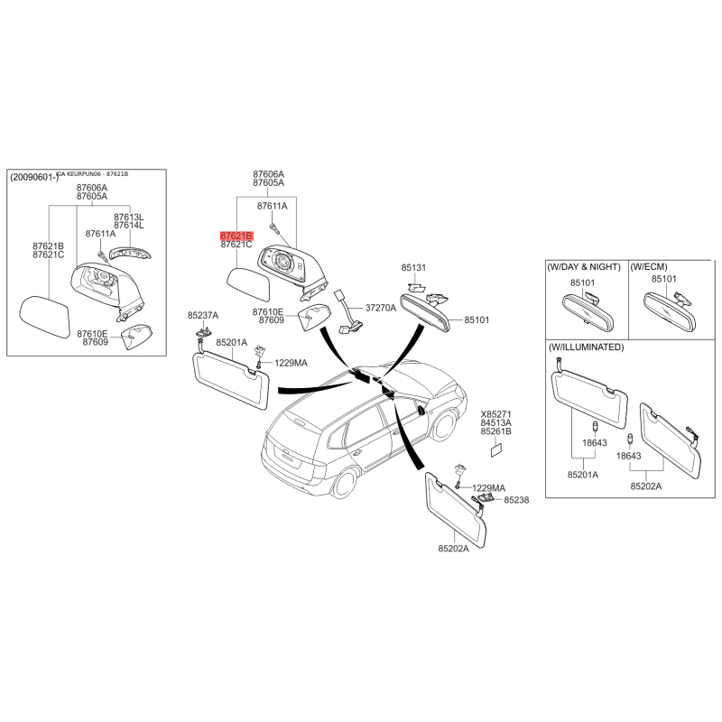 При отриманні замовлення перевіряйте комплектацію товару Дзеркало зовнішнє заднє праве 87621-1D400 Mobis.