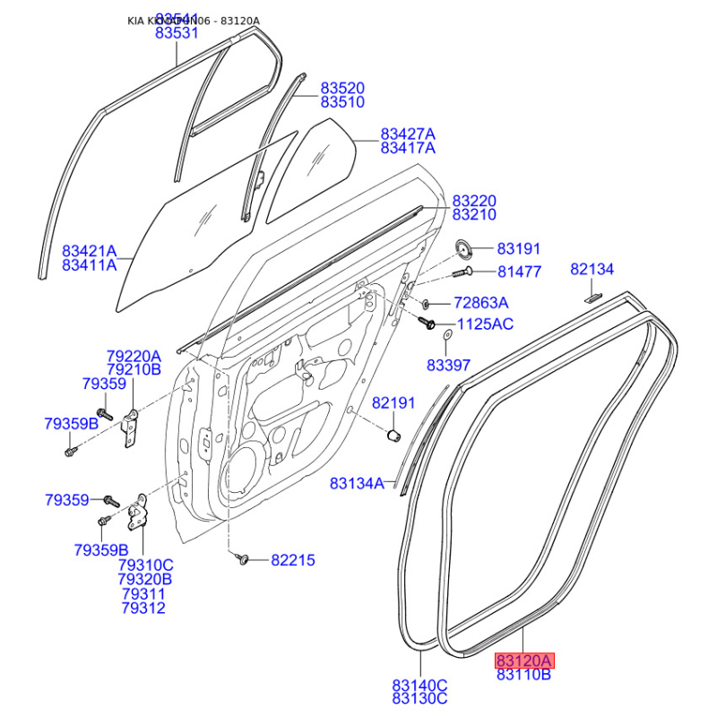При отриманні замовлення перевіряйте комплектацію товару Ущільнення дверей праве 83120-1D001 Mobis.