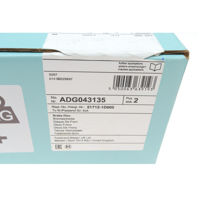Пошук деталей можна виконати за оригінальним кодом ADG043135.