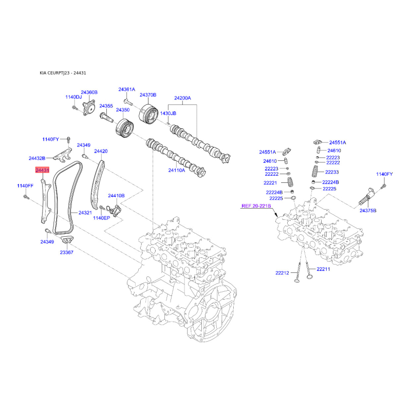Комплект ланцюга приводу розподільного валу 24431-03100 Mobis