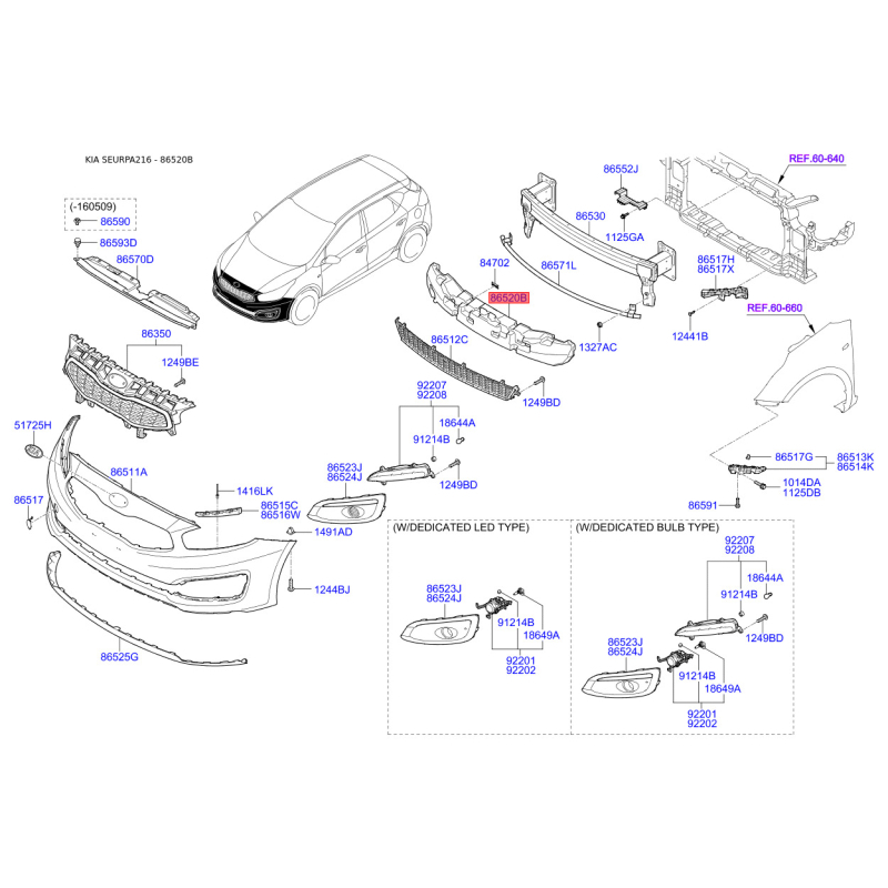 Пошук деталей можна виконати за оригінальним кодом 86520A2600.