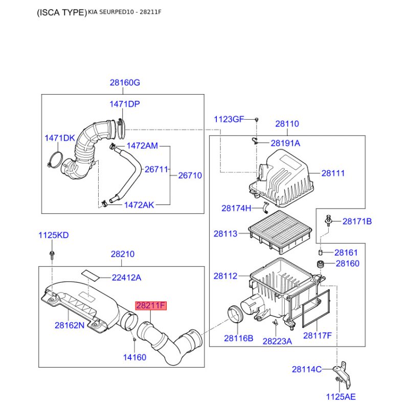 При отриманні замовлення перевіряйте комплектацію товару Рукав повітрозабірника, повітряний фільтр 28211-1H000 Mobis.