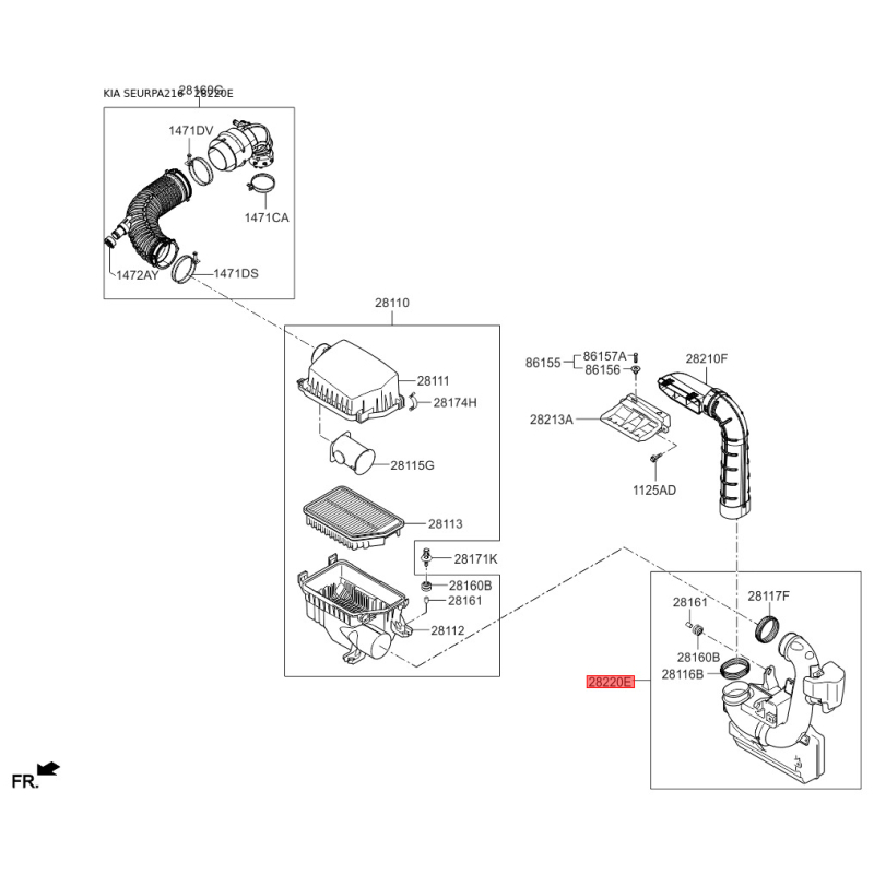 При отриманні замовлення перевіряйте комплектацію товару Рукав повітрозабірника, повітряний фільтр 28220-A5800 Mobis.
