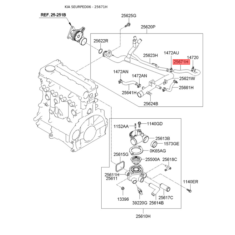 Шланг (патрубок) системи охолодження 25671-2A150 Mobis