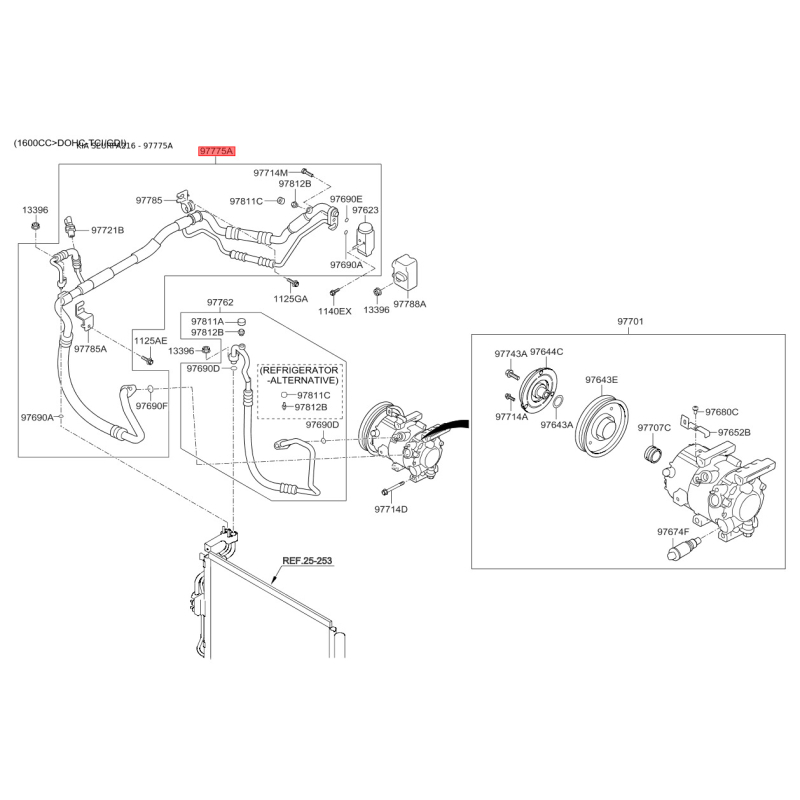 Трубопровід високого/низкого тиску, кондиціонер 97775-A5700 Mobis