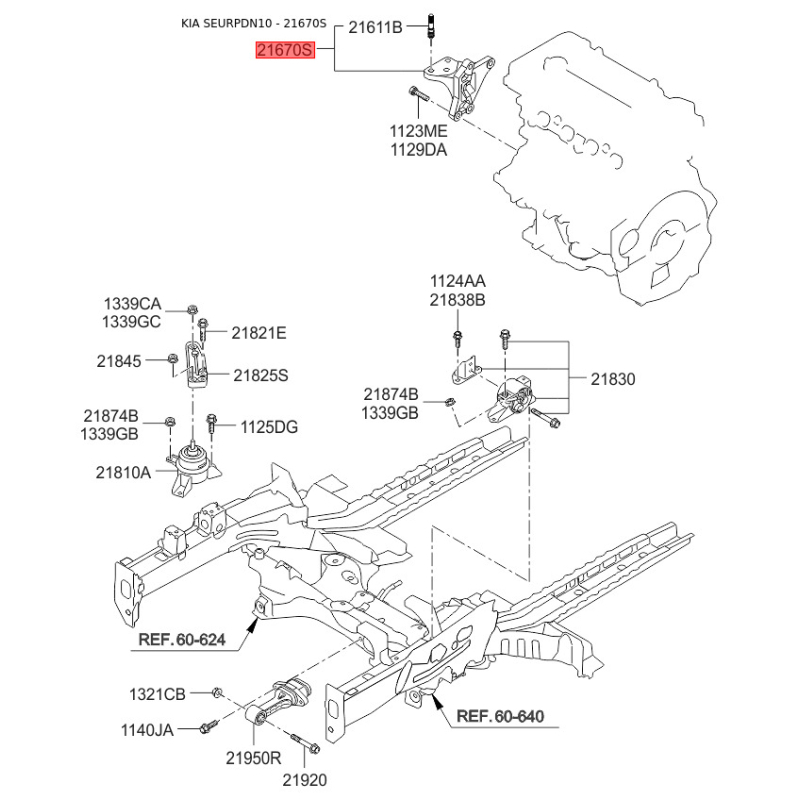 При отриманні замовлення перевіряйте комплектацію товару Кронштейн, підвіска двигуна 21670-2B000 Mobis.