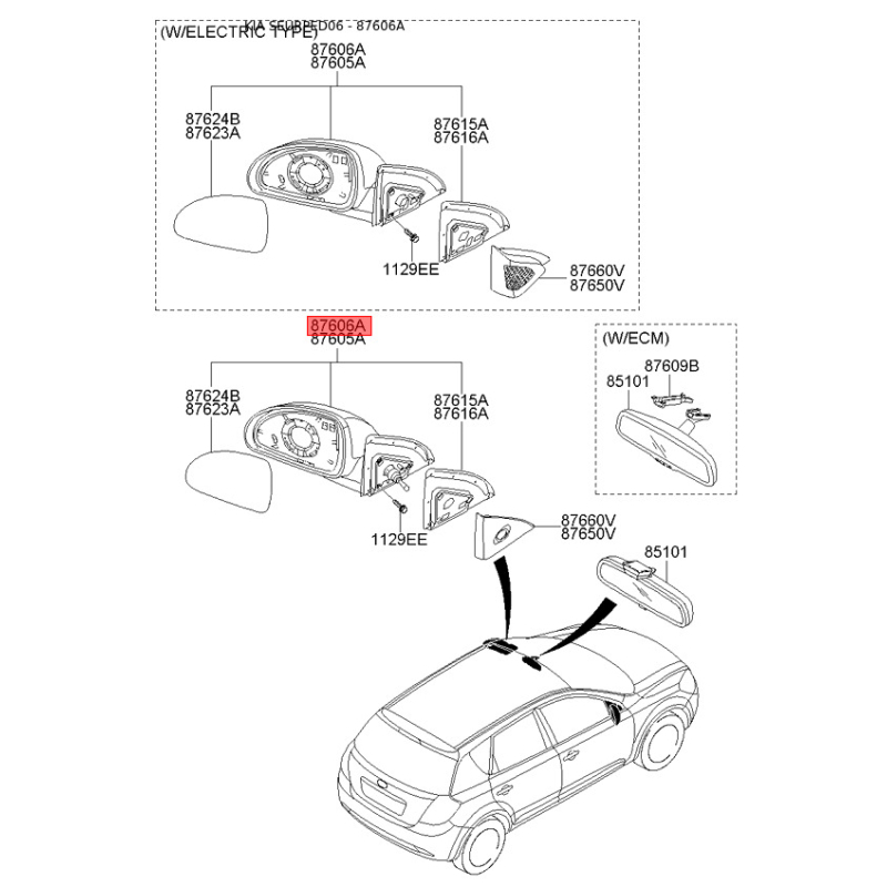 При отриманні замовлення перевіряйте комплектацію товару Дзеркало зовнішнє заднє праве 87606-1H160 Mobis.