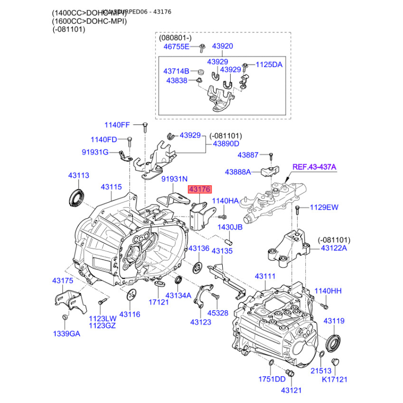 При отриманні замовлення перевіряйте комплектацію товару Кронштейн, кріплення механічної коробки передач заднє 43176-23021 Mobis.