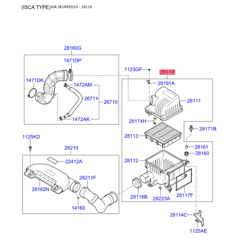 Кришка, корпус повітряного фільтра 28110-1H300 Mobis