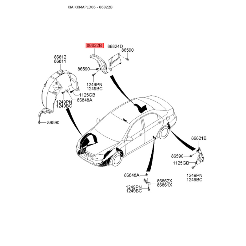 При отриманні замовлення перевіряйте комплектацію товару Обшивка (підкрилок), колісна ніша права 86822-2F501 Mobis.