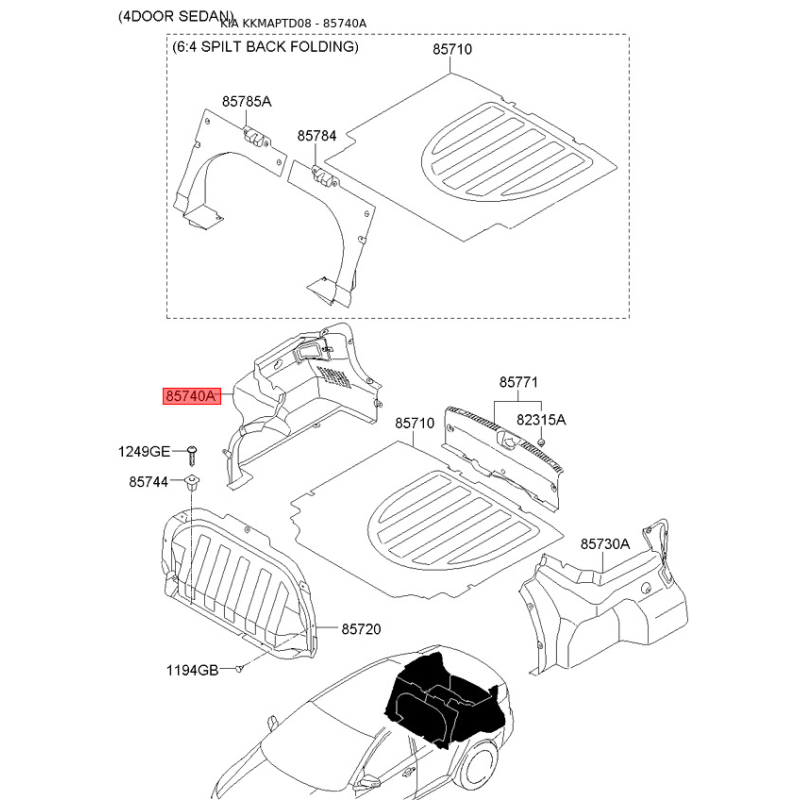 При отриманні замовлення перевіряйте комплектацію товару Оббивка багажника права 85740-1M600VA Mobis.