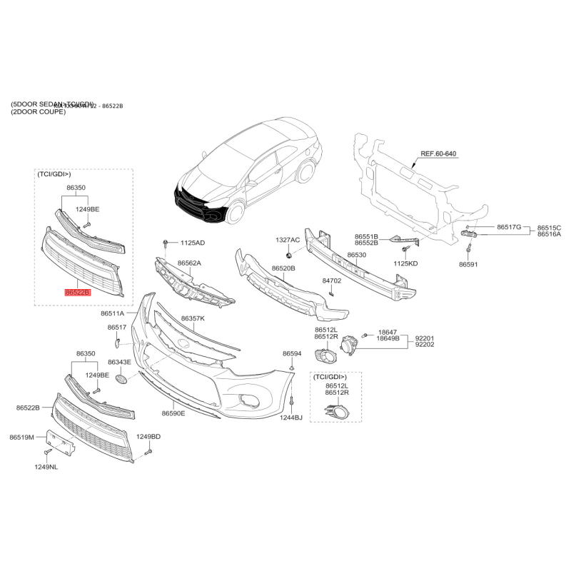 Пошук деталей можна виконати за оригінальним кодом 86522A7000.