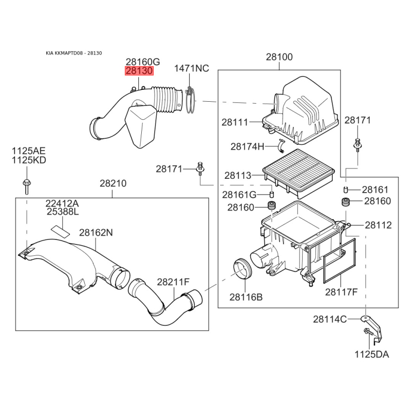 Якщо у вас виникли питання щодо Шланг, система подачі повітря 28130-1M400 Mobis з номером 281301M400, зв'яжіться з нашим консультантом.