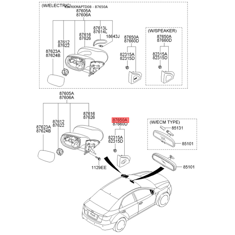 Оригінальний код 876501M000 повністю збігається з каталожними номером виробника Mobis.