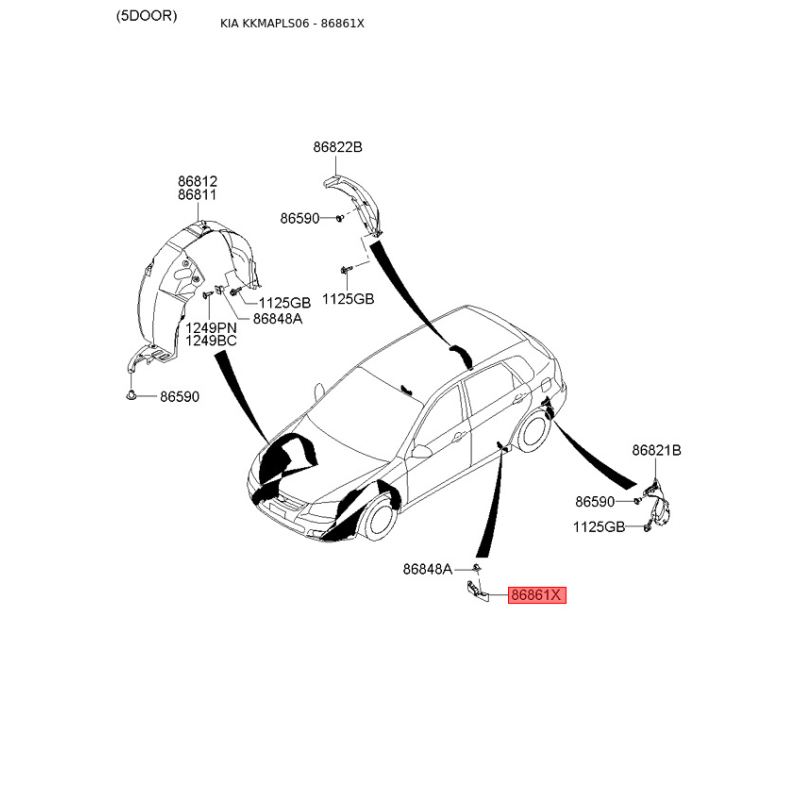 При отриманні замовлення перевіряйте комплектацію товару Кріплення підкрилка і бризковика ліве 86861-2F000 Mobis.