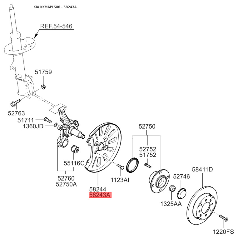 Захист внутрішній задньої маточини задній лівий 58243-2F100 Mobis