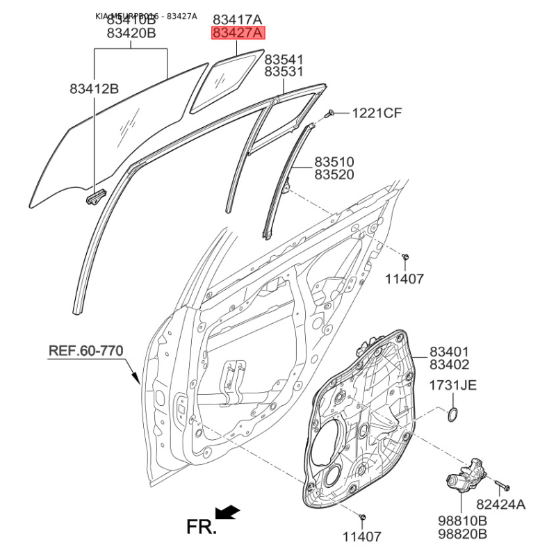 Бокове вікно дверей праве 83427-A7010 Mobis