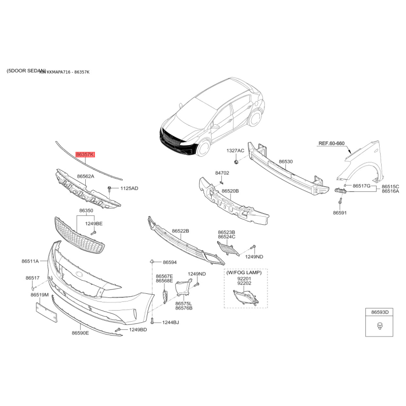 Пошук деталей можна виконати за оригінальним кодом 86357A7001.
