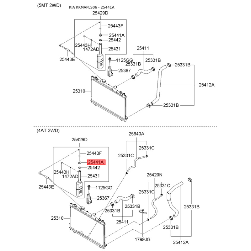 Пошук деталей можна виконати за оригінальним кодом 254412F000.