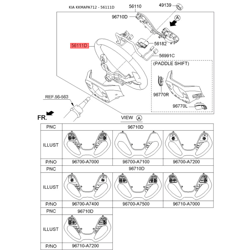 Пошук деталей можна виконати за оригінальним кодом 56111A7000D3A.