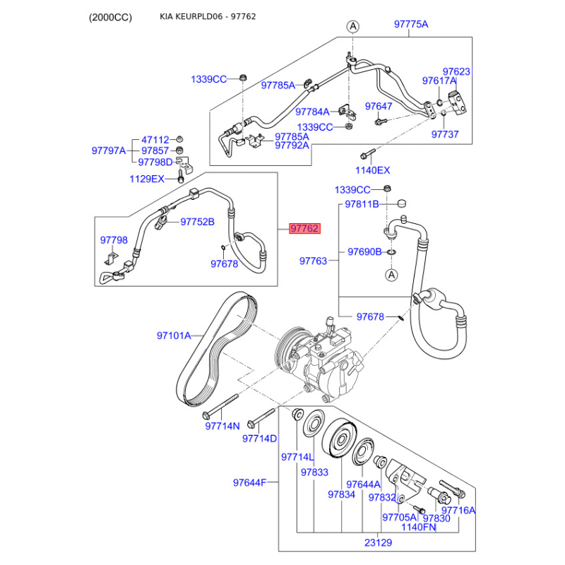 Трубопровід високого/низкого тиску, кондиціонер 97762-2F800 Mobis