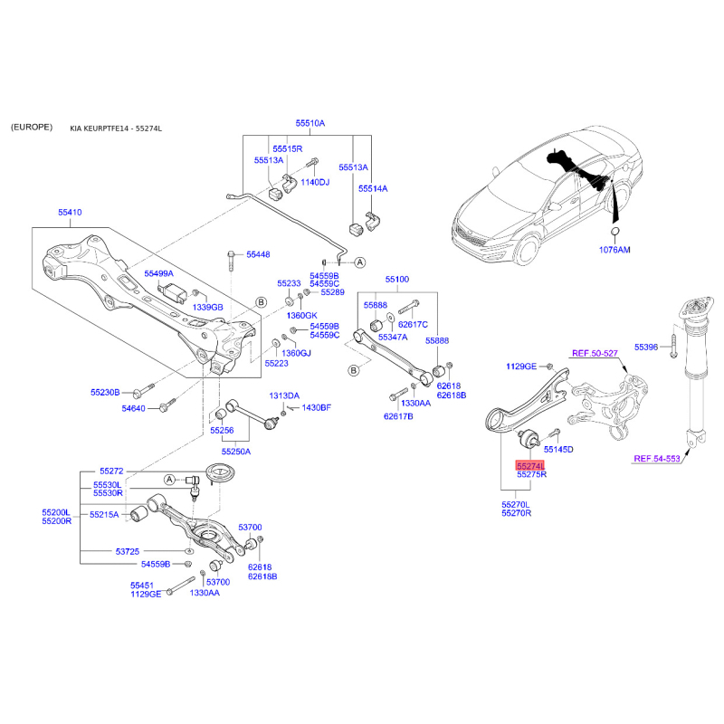 Пошук деталей можна виконати за оригінальним кодом 552742T000.