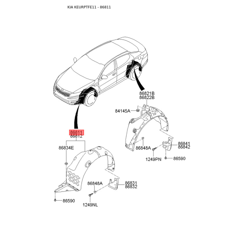 При отриманні замовлення перевіряйте комплектацію товару Обшивка (підкрилок), колісна ніша ліва 86811-2T100 Mobis.