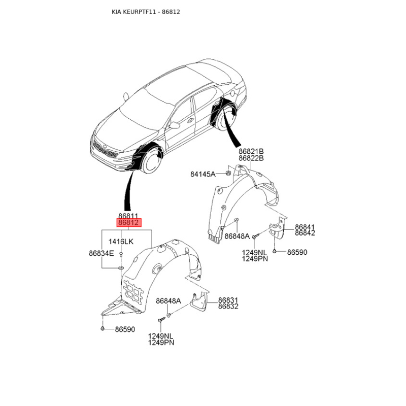 При отриманні замовлення перевіряйте комплектацію товару Обшивка (підкрилок), колісна ніша права 86812-2T000 Mobis.