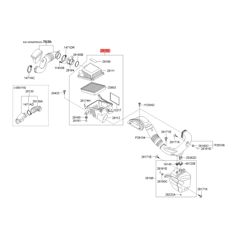 Якщо у вас виникли питання щодо Кришка, корпус повітряного фільтра 28110-2G100 Mobis з номером 281102G100, зв'яжіться з нашим консультантом.