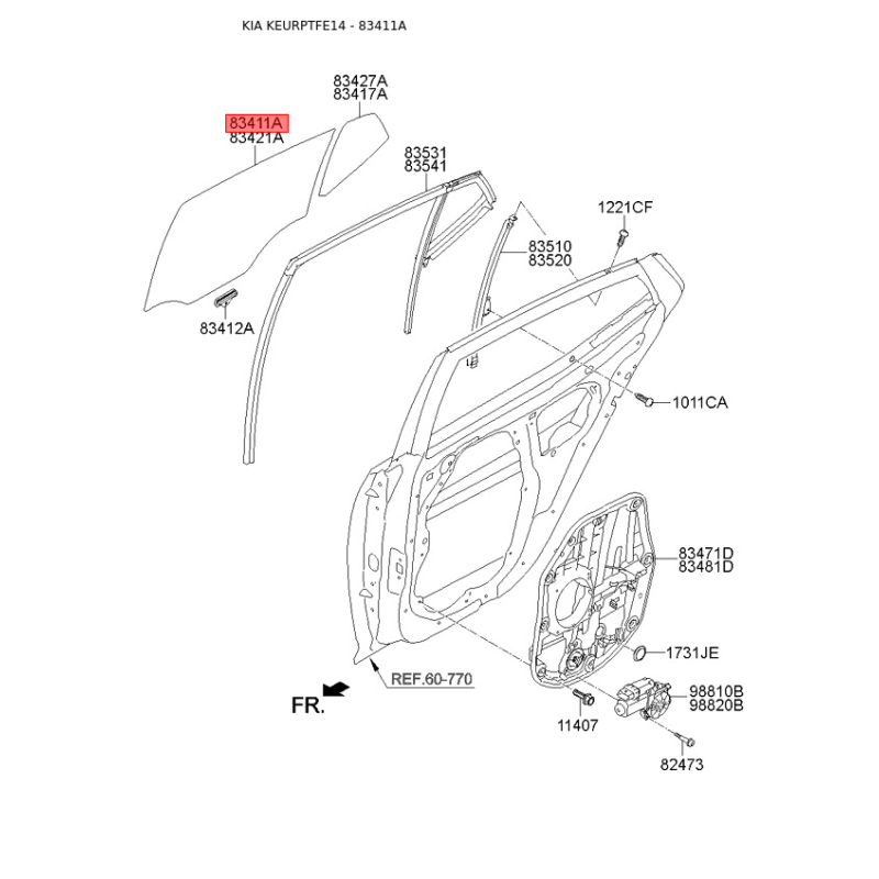 Бокове вікно дверей ліве 83411-2T010 Mobis