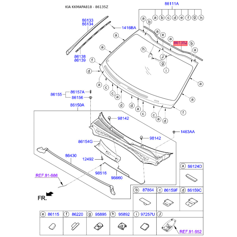 Молдинг (ущільнювач) лобового скла верхній 86130-D4000 Mobis