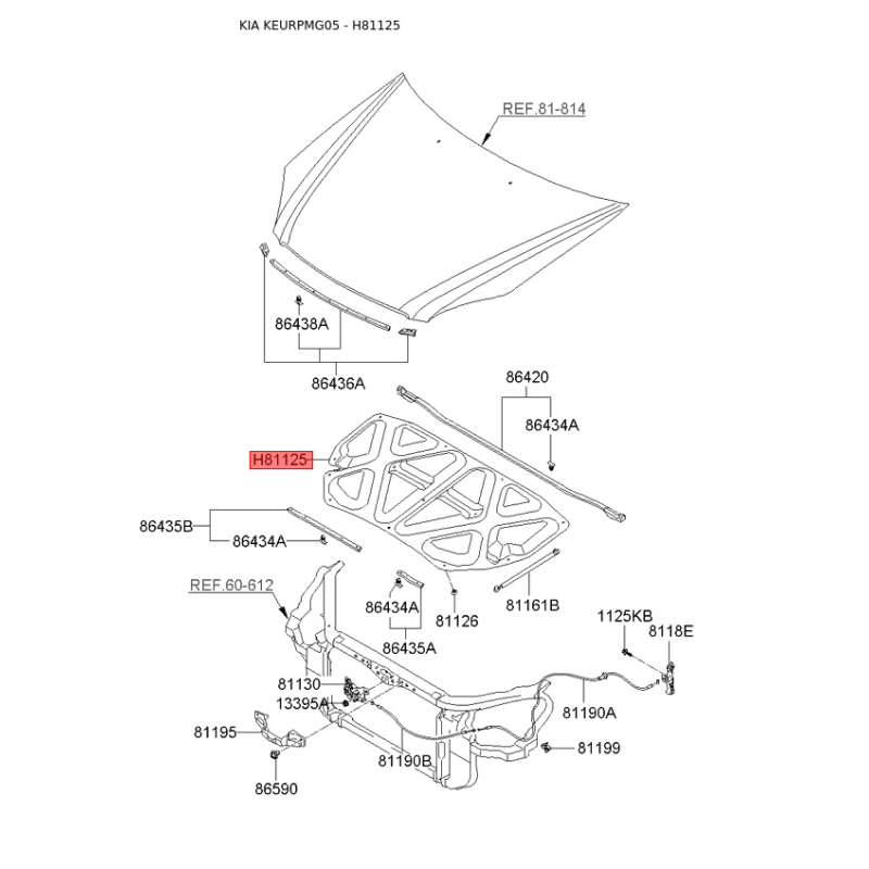 Шумоізоляція (теплоізоляція) капота 81125-2G010 Mobis