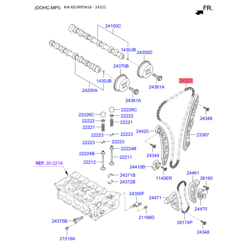 Ланцюг приводу розподільного валу 24321-2E380 Mobis