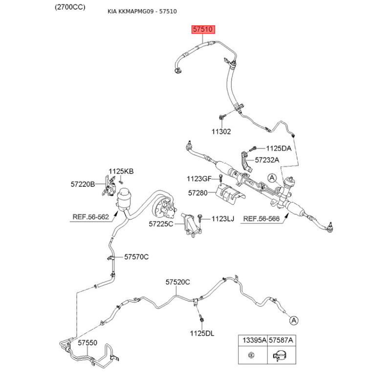 Гідравлічний шланг, кермо 57510-2G510 Mobis