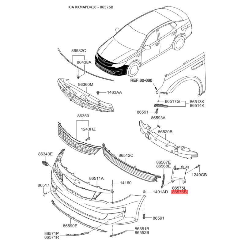 Пошук деталей можна виконати за оригінальним кодом 86574D4000.