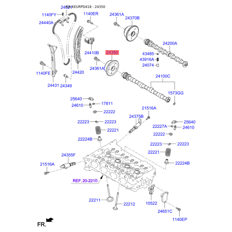 Комплект ланцюга приводу розподільного валу 24350-2E301 Mobis