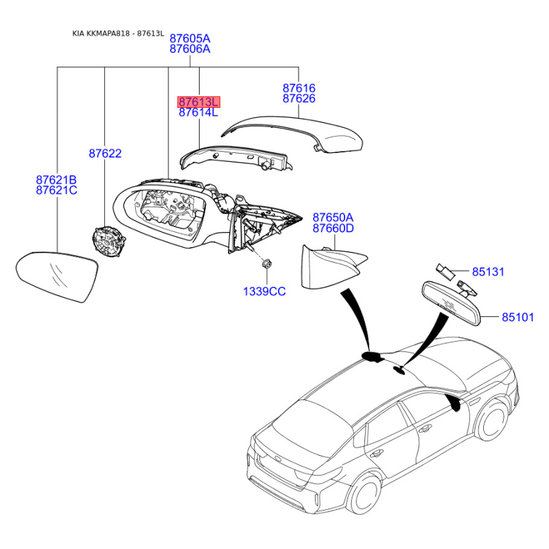 Пошук деталей можна виконати за оригінальним кодом 87613D4000.
