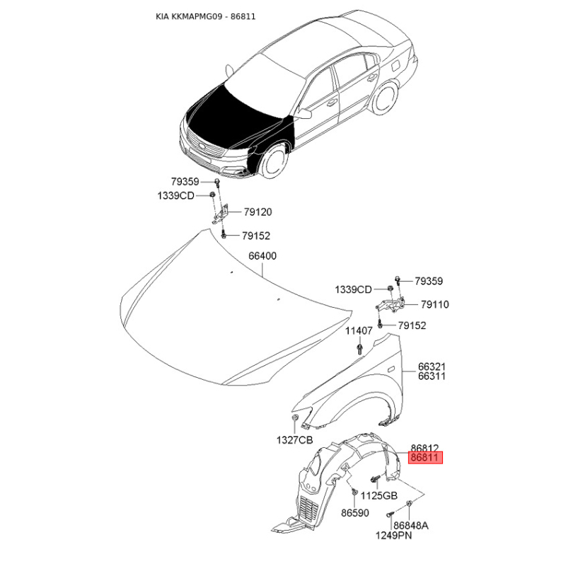 Обшивка (підкрилок), колісна ніша ліва 86811-2G500 Mobis