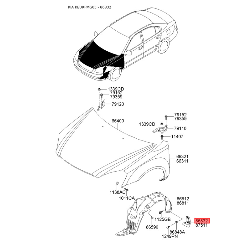 Пошук деталей можна виконати за оригінальним кодом 868322G000.