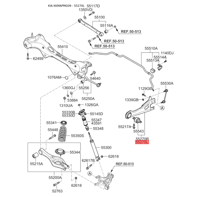 Тяга задньої підвіски поздовжня ліва 55270-2G000 Mobis