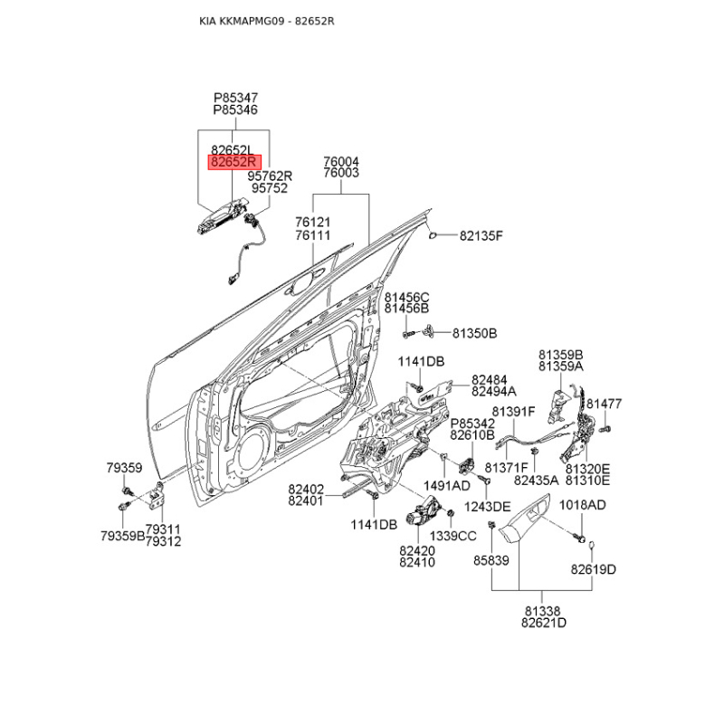 Система керування ручки дверей права 82662-2G020 Mobis