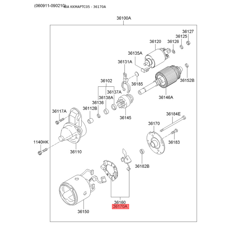 Вугільна щітка, стартер 36170-26851 Mobis