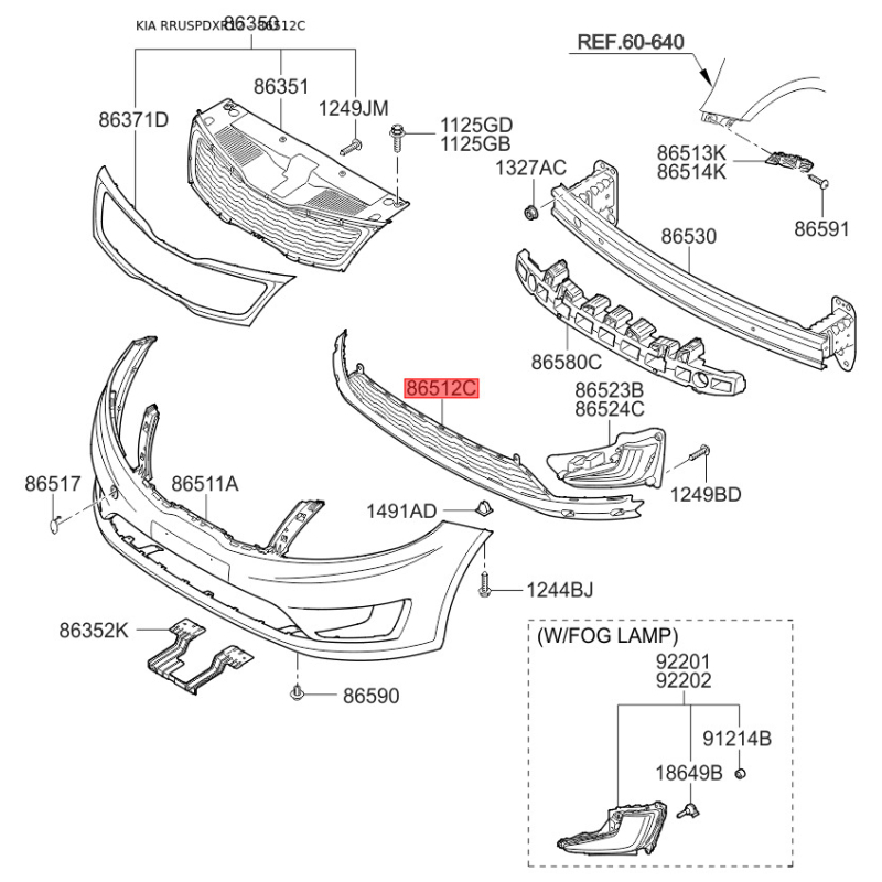 Пошук деталей можна виконати за оригінальним кодом 865614Y000.