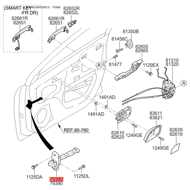 Петля бічних дверей ліва 79380-4Y000 Mobis