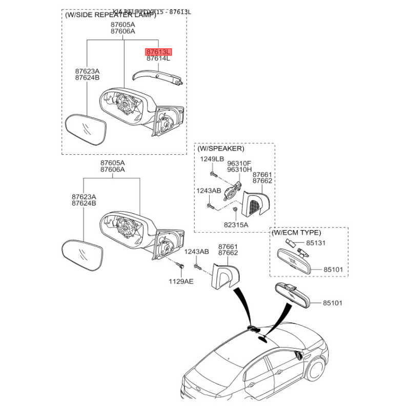 При отриманні замовлення перевіряйте комплектацію товару Повторювач поворотів на дзеркалі лівий 87614-4Y000 Mobis.