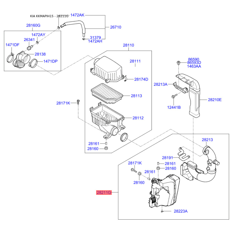 При отриманні замовлення перевіряйте комплектацію товару Рукав повітрозабірника, повітряний фільтр 28211-1W170 Mobis.